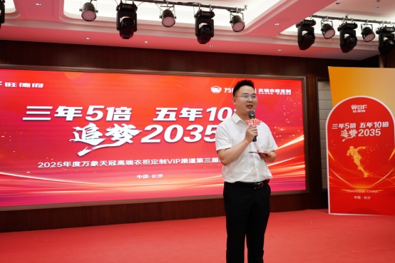旺德府家居集團(tuán)新零售定制業(yè)務(wù)中心聯(lián)席總經(jīng)理金超群先生代表萬象天冠品牌,向現(xiàn)場每一位嘉賓表達(dá)誠摯感謝。并向全體合作伙伴傳遞熱忱期許:“期待在萬象天冠高端衣柜定制的發(fā)展征途上,憑開拓創(chuàng)新的銳氣破局向前,同心共繪行業(yè)繁榮新圖景!”