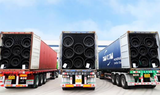2021年3月泉恩管材開始陸續(xù)發(fā)貨,采用陸運(yùn)集裝箱方式統(tǒng)一發(fā)貨到國內(nèi)天津港,再經(jīng)天津港海運(yùn)將管材運(yùn)輸?shù)侥崛绽麃?